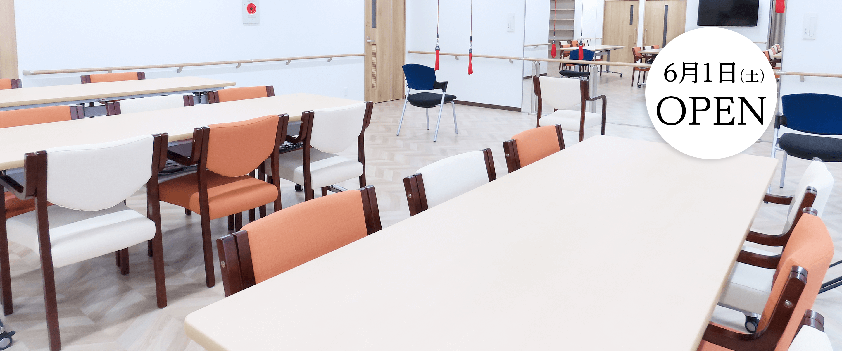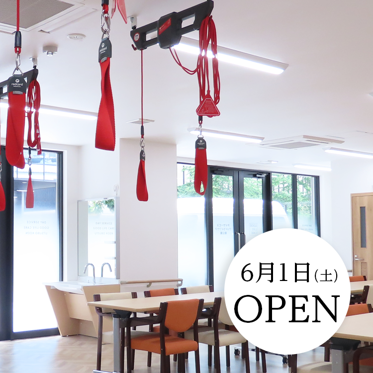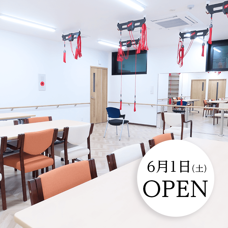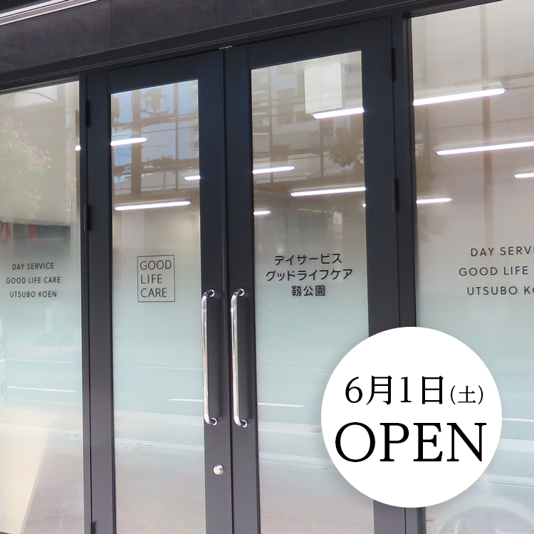 6月1日(土)オープン。しっかり動いて楽しく過ごす。靱公園北西、緑多い街並みに新しいデイサービスが開設します。